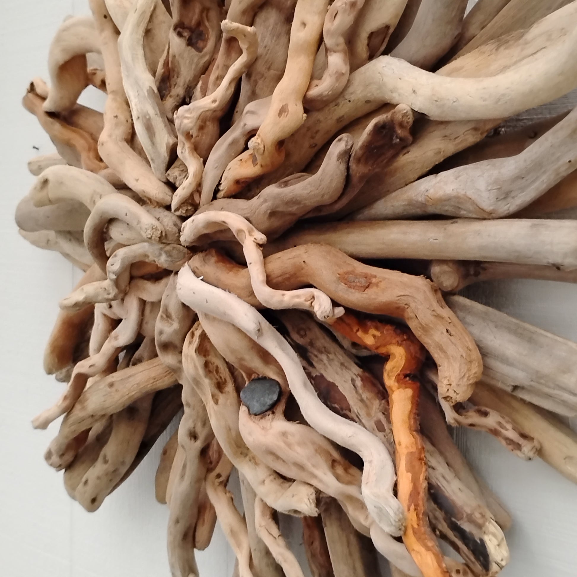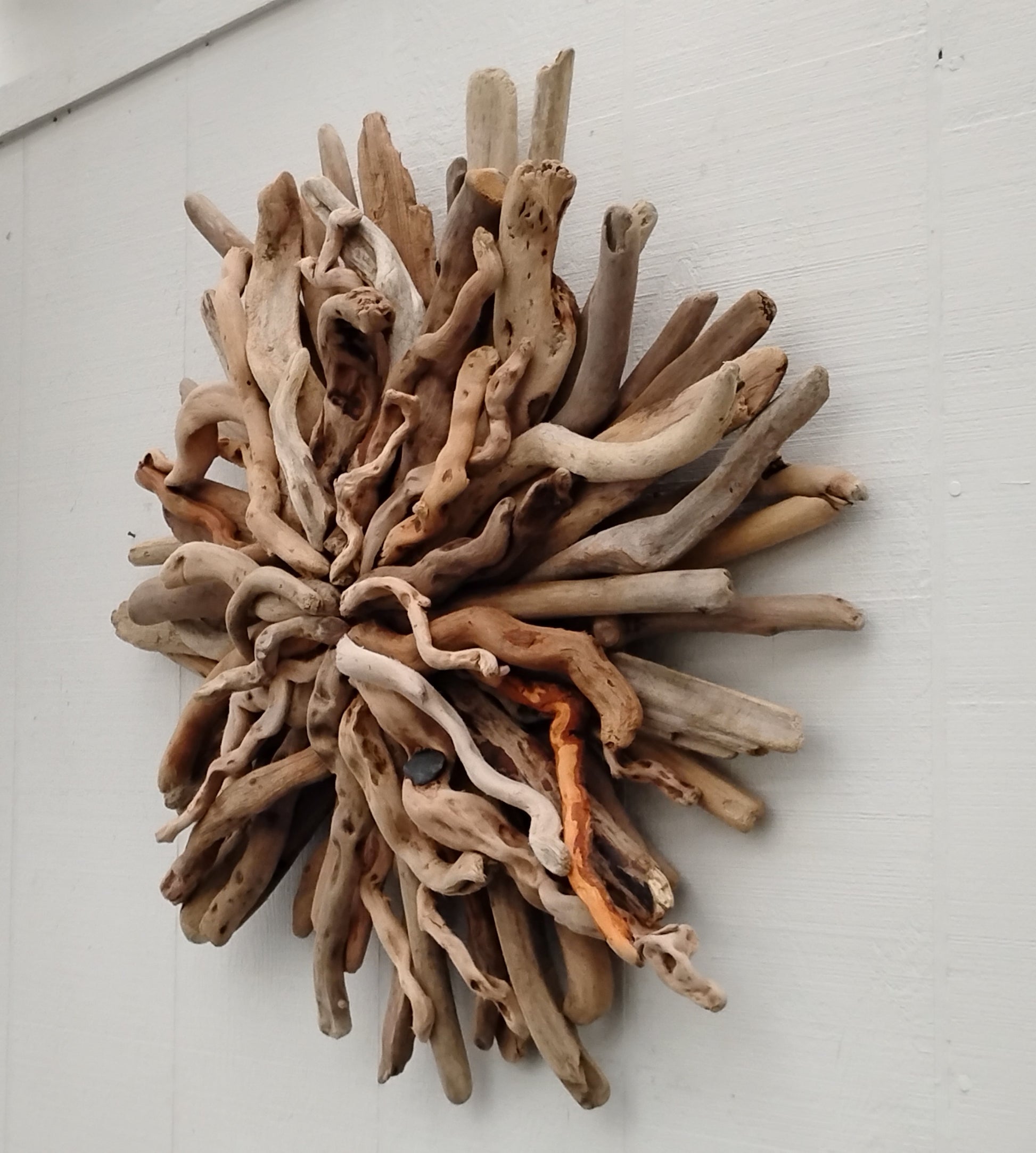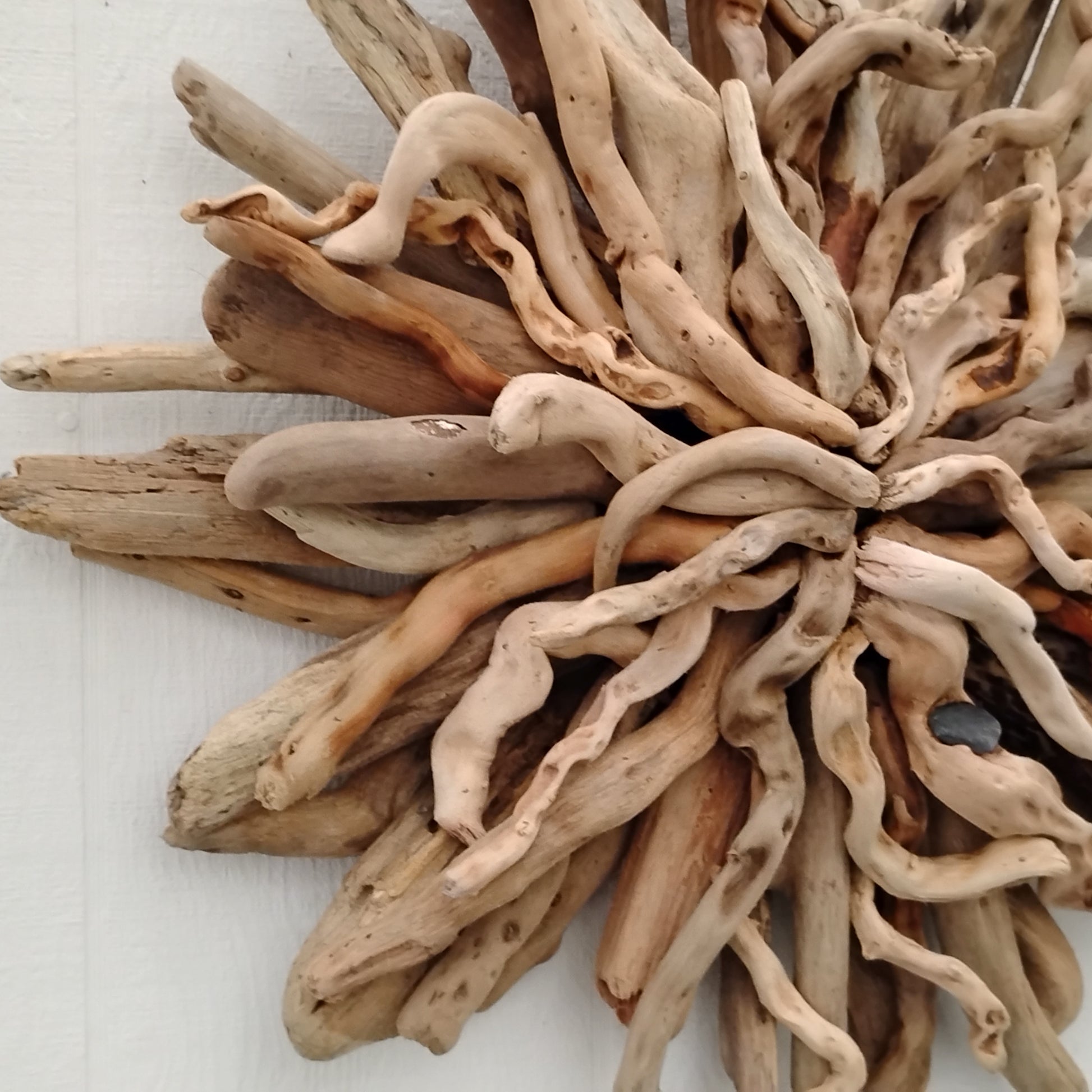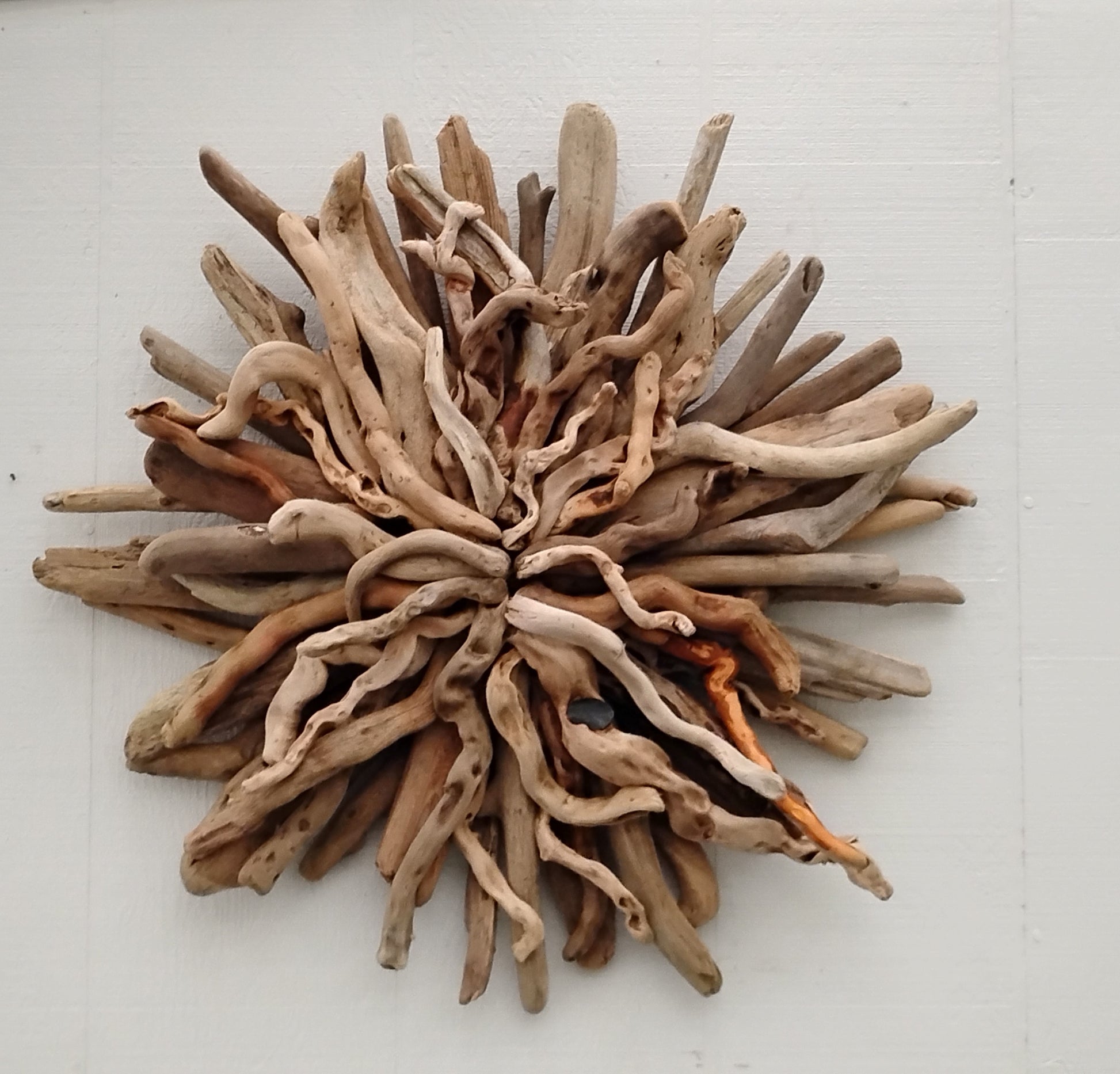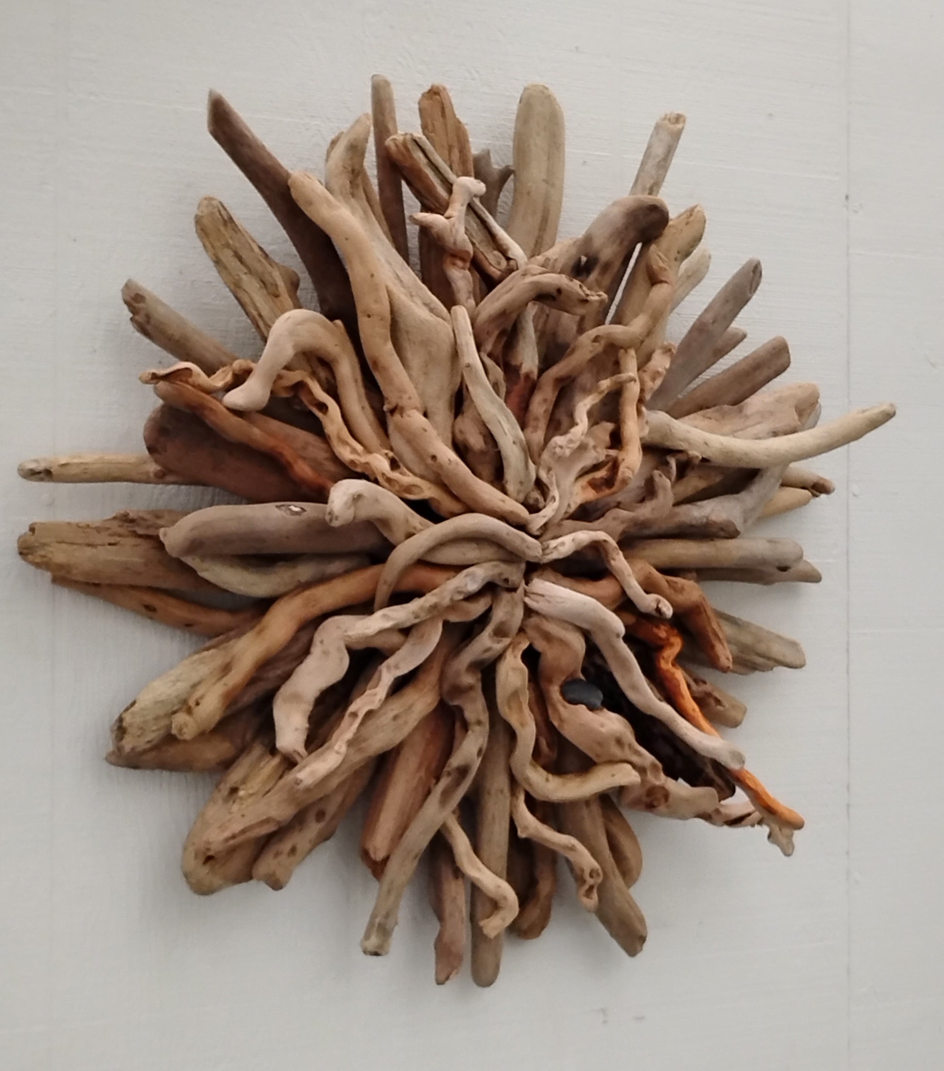 Enjoy beach ambiance in your own home with this naturally twisted driftwood starburst. This one measures 25 x 25 inches. I made it with driftwood I collected at the ocean.