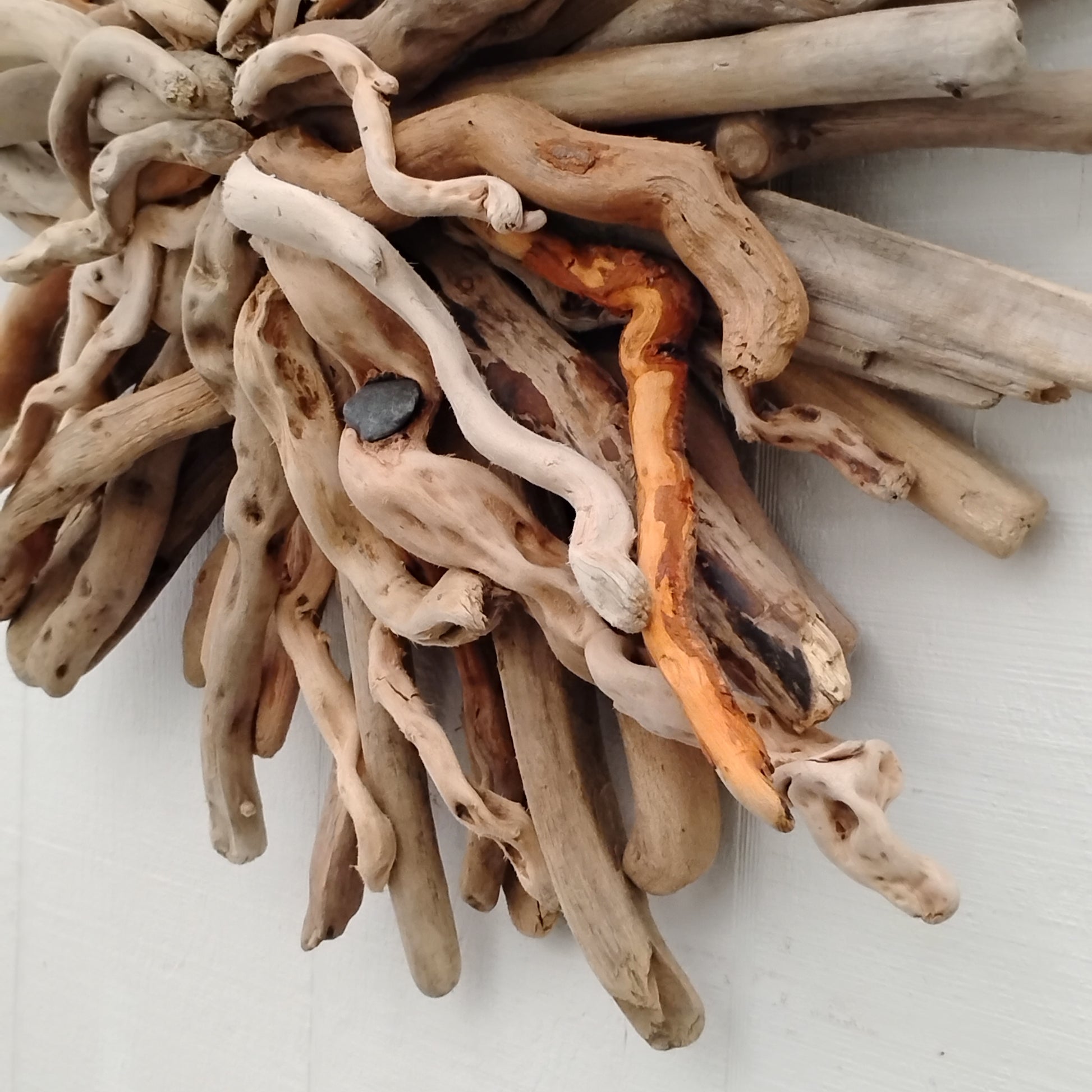 I love making these because each one is uniquely different because of the natural color and texture of the driftwood sticks used in each sculpture. They are all one of a kind sculptures handmade one at a time by me in Oregon. All of the driftwood has been washed before use. There is no paint or stain on this sculpture. All of the colors seen are natural to the driftwood pieces and are caused by natural sun, sand and surf.