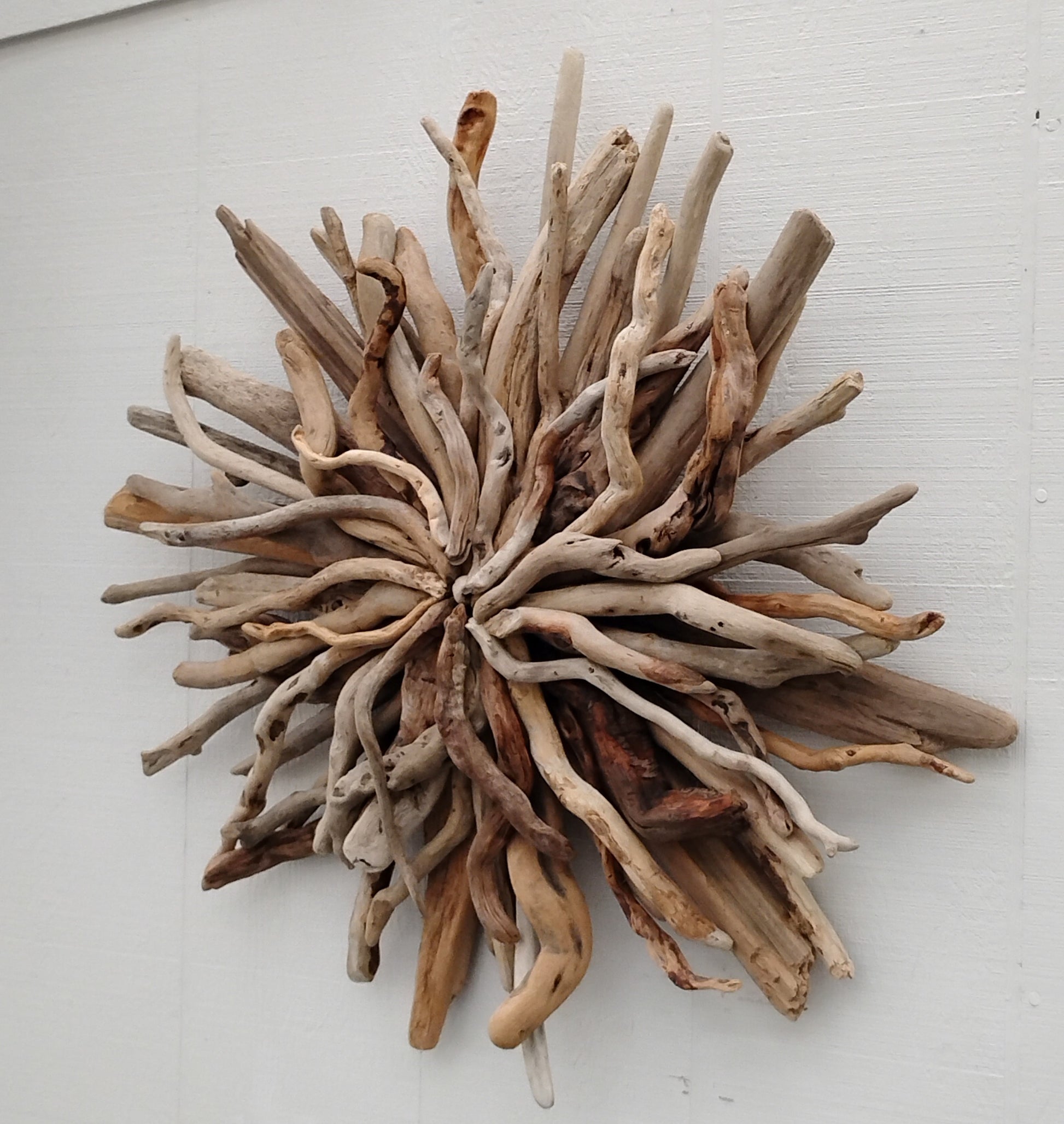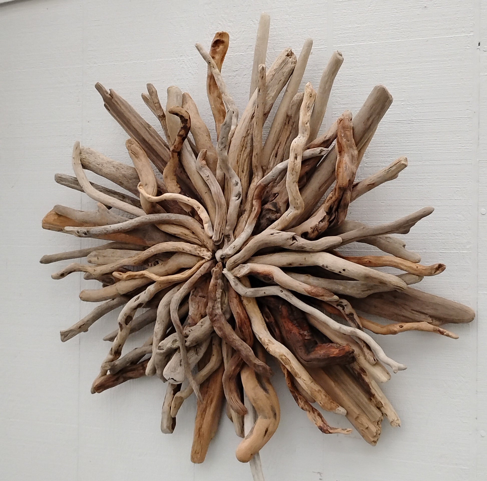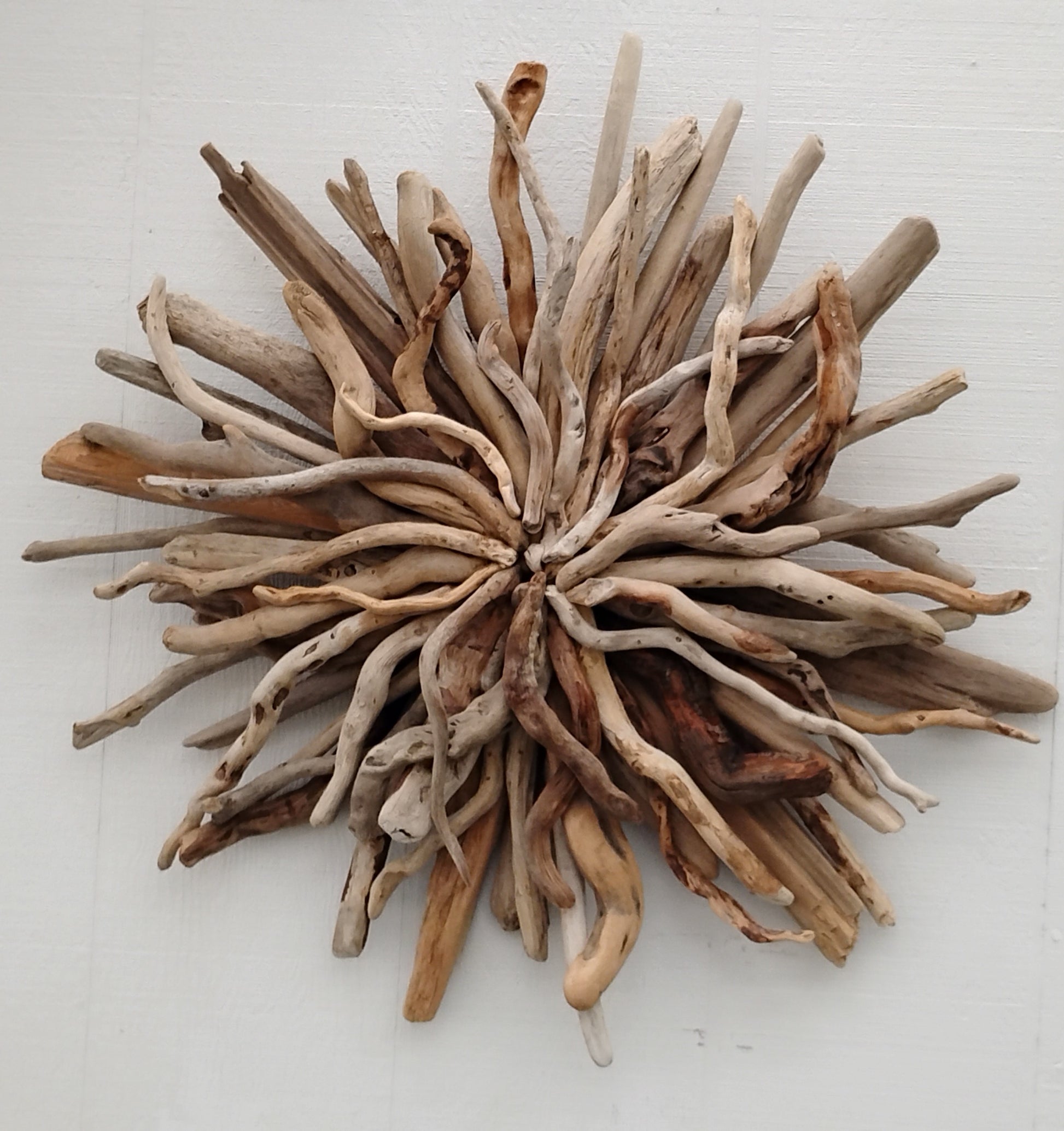 To see more one of a kind, handmade driftwood art starburst wall hangings look here -