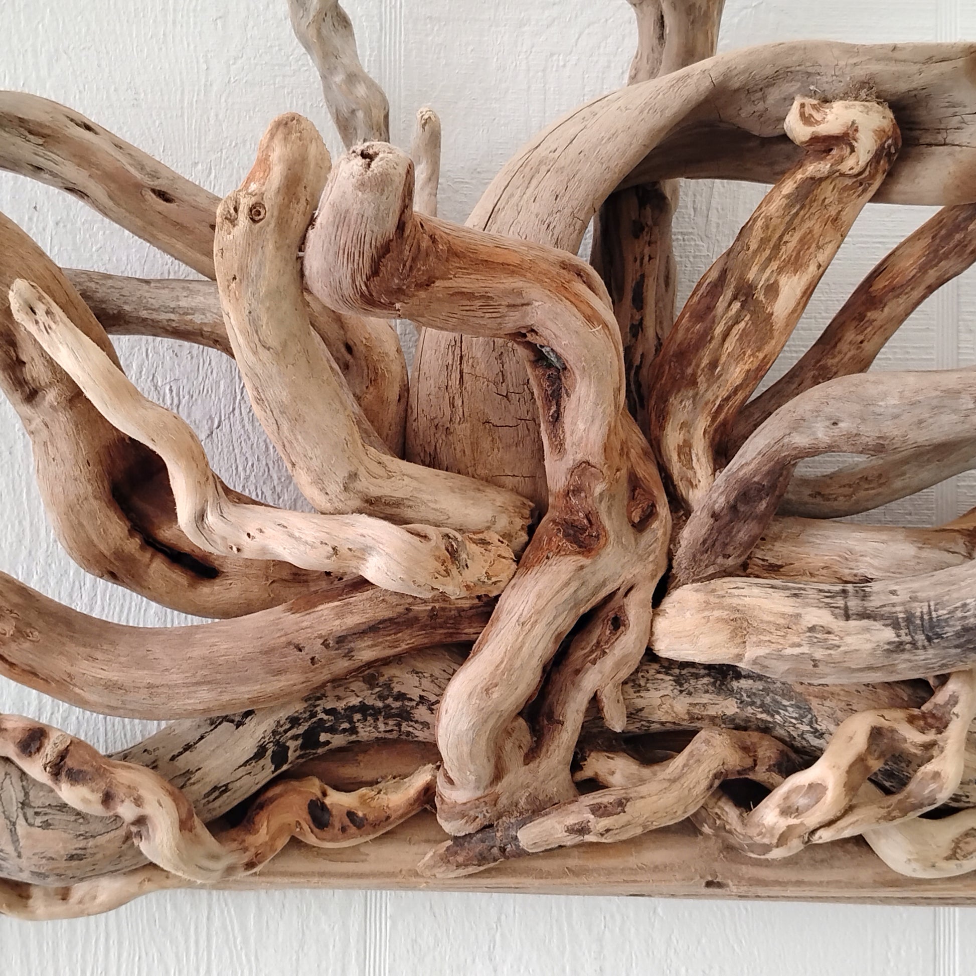 Enhance your living space with this stunning Large Driftwood Sculpture. Handcrafted from naturally rustic weathered driftwood, this wall decor piece is a true work of art. Its unique design adds a touch of rustic charm and elegance to any room. Elevate your home decor with this beautiful Eco-friendly and sustainably sourced driftwood sculpture.