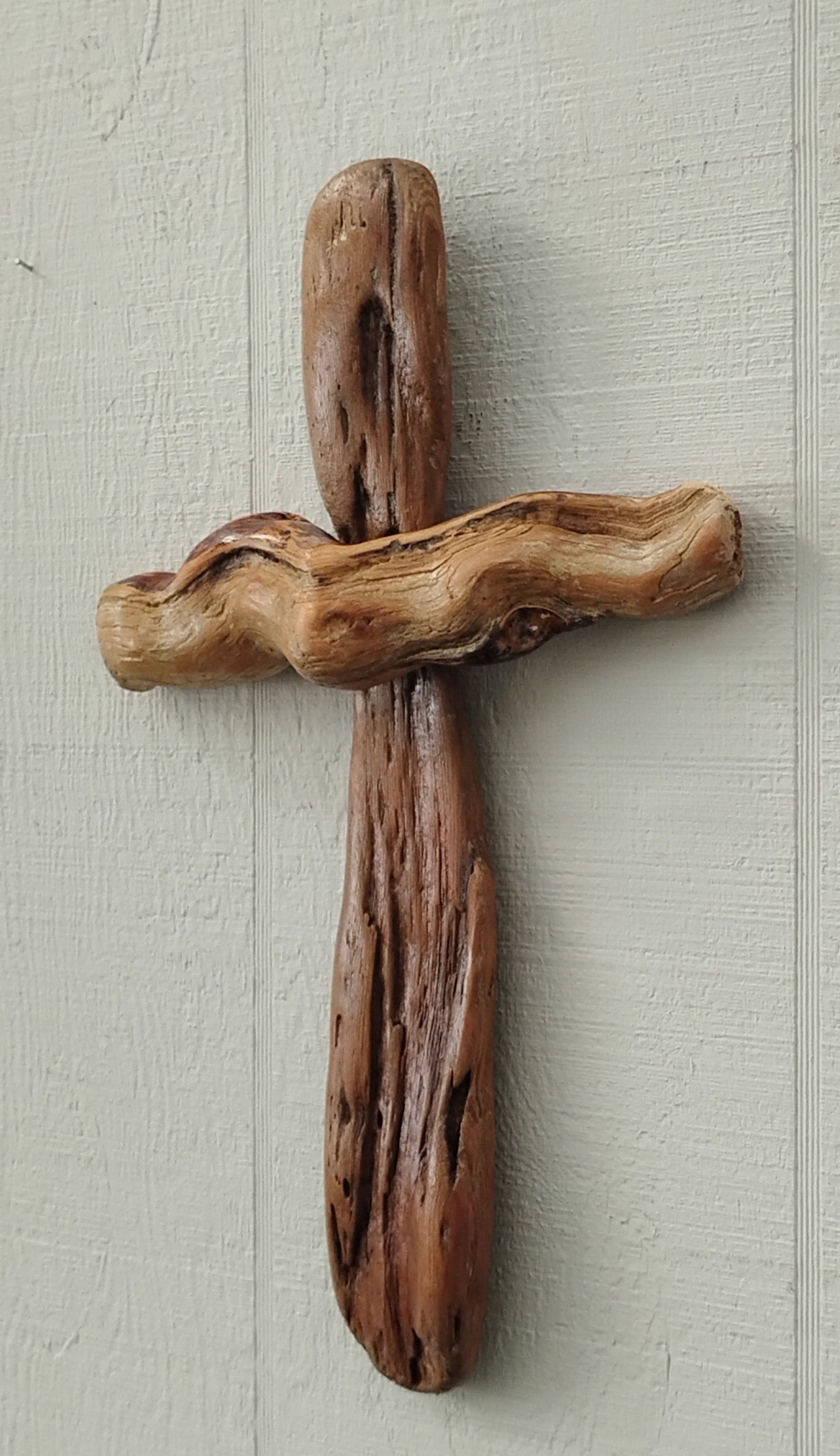 I made this driftwood cross with real driftwood I collected along the beaches of Oregon.