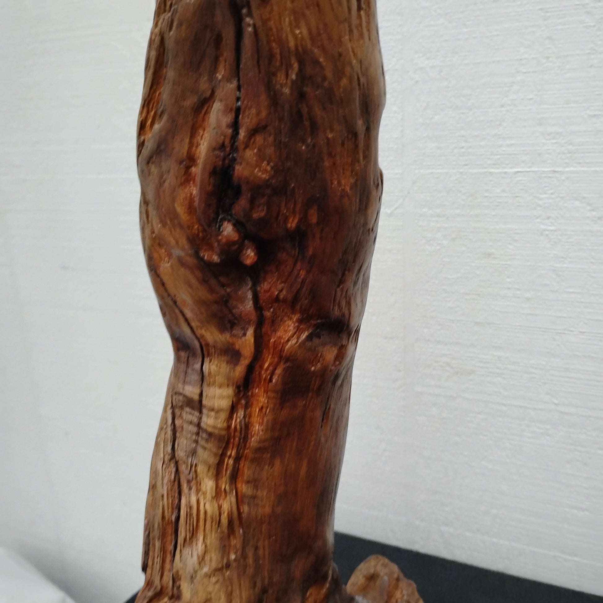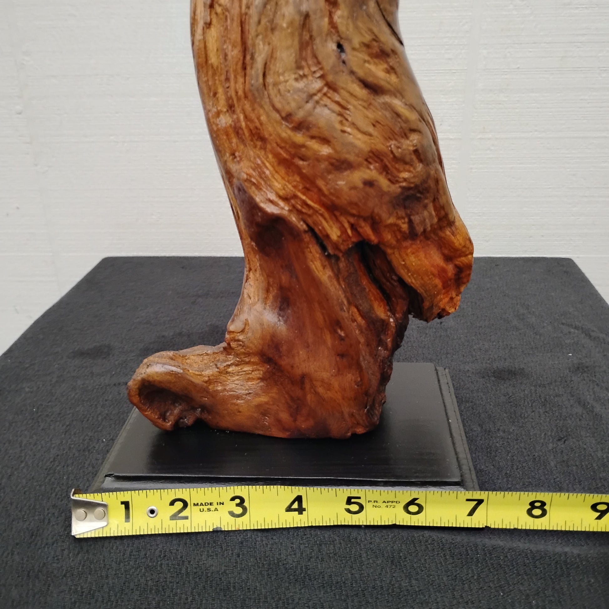 This unique and rare driftwood art abstract table sculpture was hand crafted from a natural piece of dark Oregon driftwood that I have stabilized and cleaned up then attached to a wood base that I have painted black. I have sealed it with varnish for added protection and to bring out the awesome natural colors seen in this piece. This sculpture including the base measures approximately 24 x 3 inches. It was an amazing find as it was when I found it, so I decided to only clean it and make it a show piece. Adding a natural wood sculpture like this a simple way to bring natural elements into your home while making a beautiful visual statement as well.