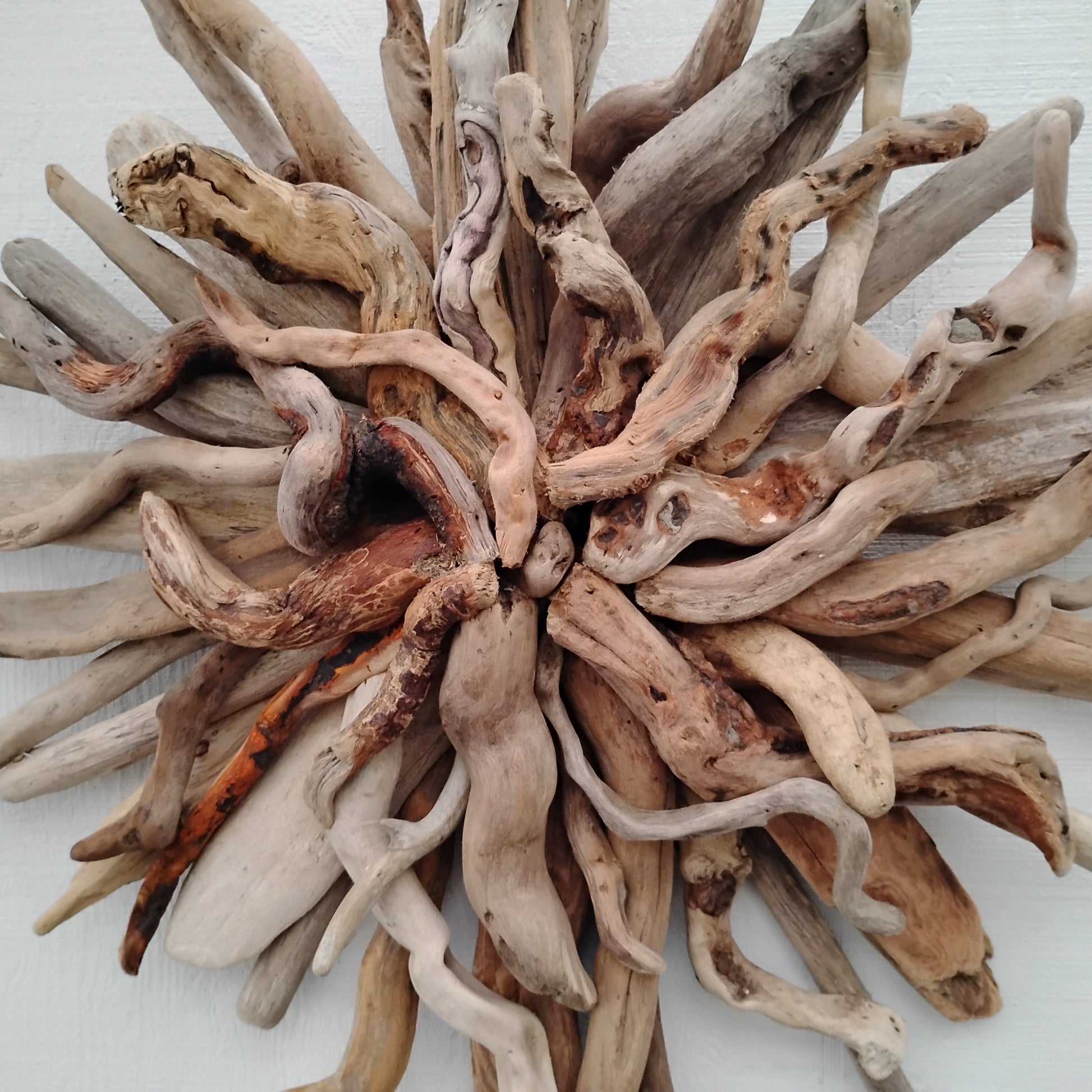 Add natural, coastal charm and elegance to your home with driftwood. This starburst was hand-crafted using real naturally weathered driftwood. The starburst design adds a touch of texture, dimension and asymmetry to your interior style. Bring the beauty of the beach indoors with this stunning wall hanging. Create a stunning dynamic focal point with visual interest.
