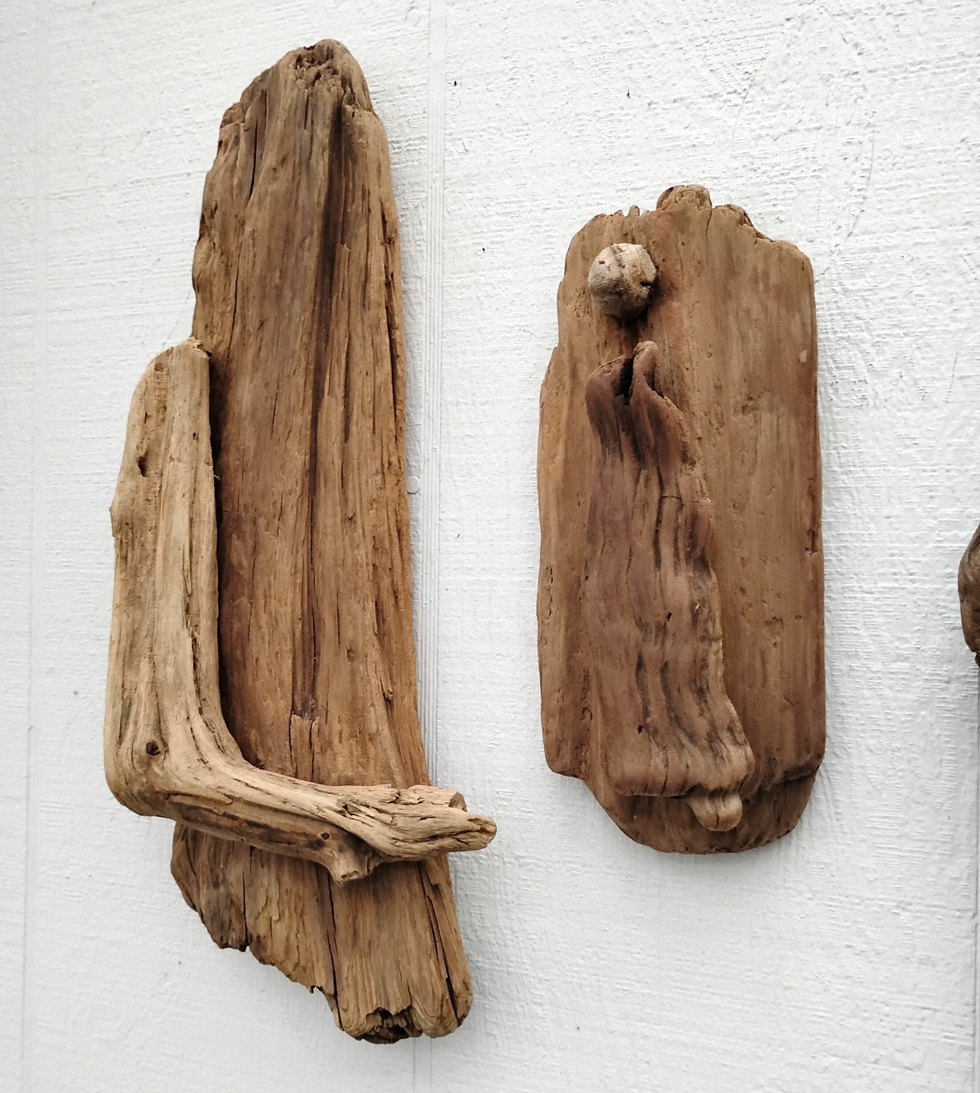 I made this driftwood "LIVE" sign by selecting four pieces of driftwood as the backs for each letter. Then I attached one letter to each piece with nails. Each piece has a hanger which allows you hang each letter in any way you choose. Vertical, horizontal, zig-zag....one high, the next lower....whatever you want.
